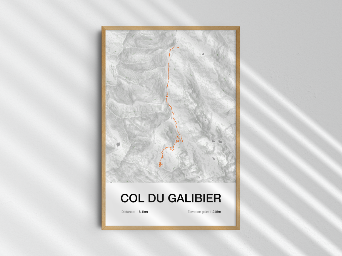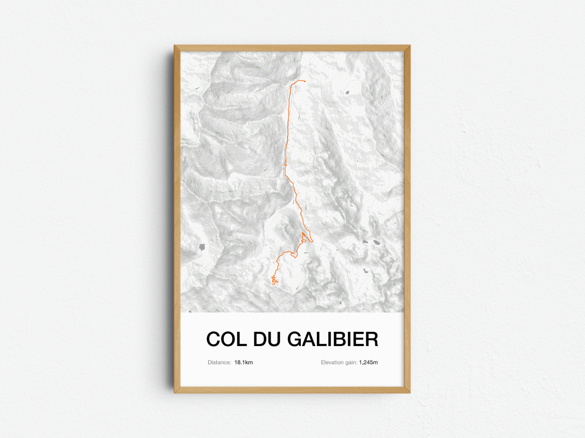 A spectacular art print of Col du Galibier from Valloire, the magnificent Alpine giant that's one of the most featured climbs in Tour de France history. This design celebrates the Galibier's legendary status in our Iconic Climbs series.