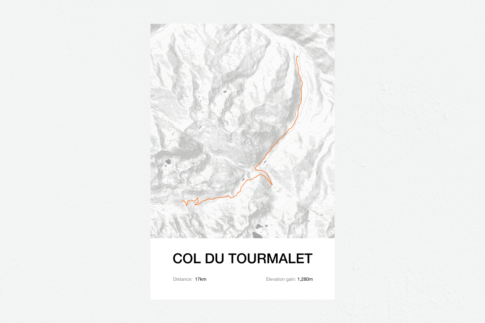A majestic art print of Col du Tourmalet via Sainte Marie de Campan, the legendary Pyrenean giant first featured in the 1910 Tour de France. This artwork celebrates one of cycling's most historic and frequently climbed mountains.